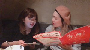 焼肉の注文を相談中のあいりとかな。(笑)