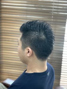 左側は、ほぼ刈り上げで右側はツーブロックで